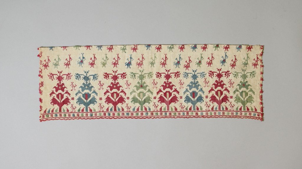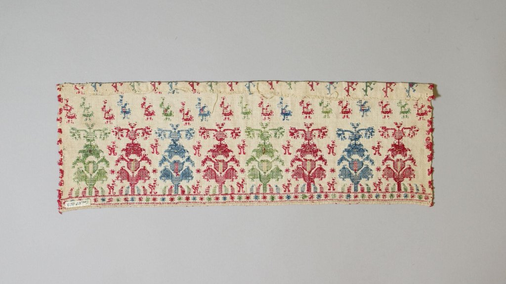 Description: Embroidery, silk on linen, 18th century, Greek