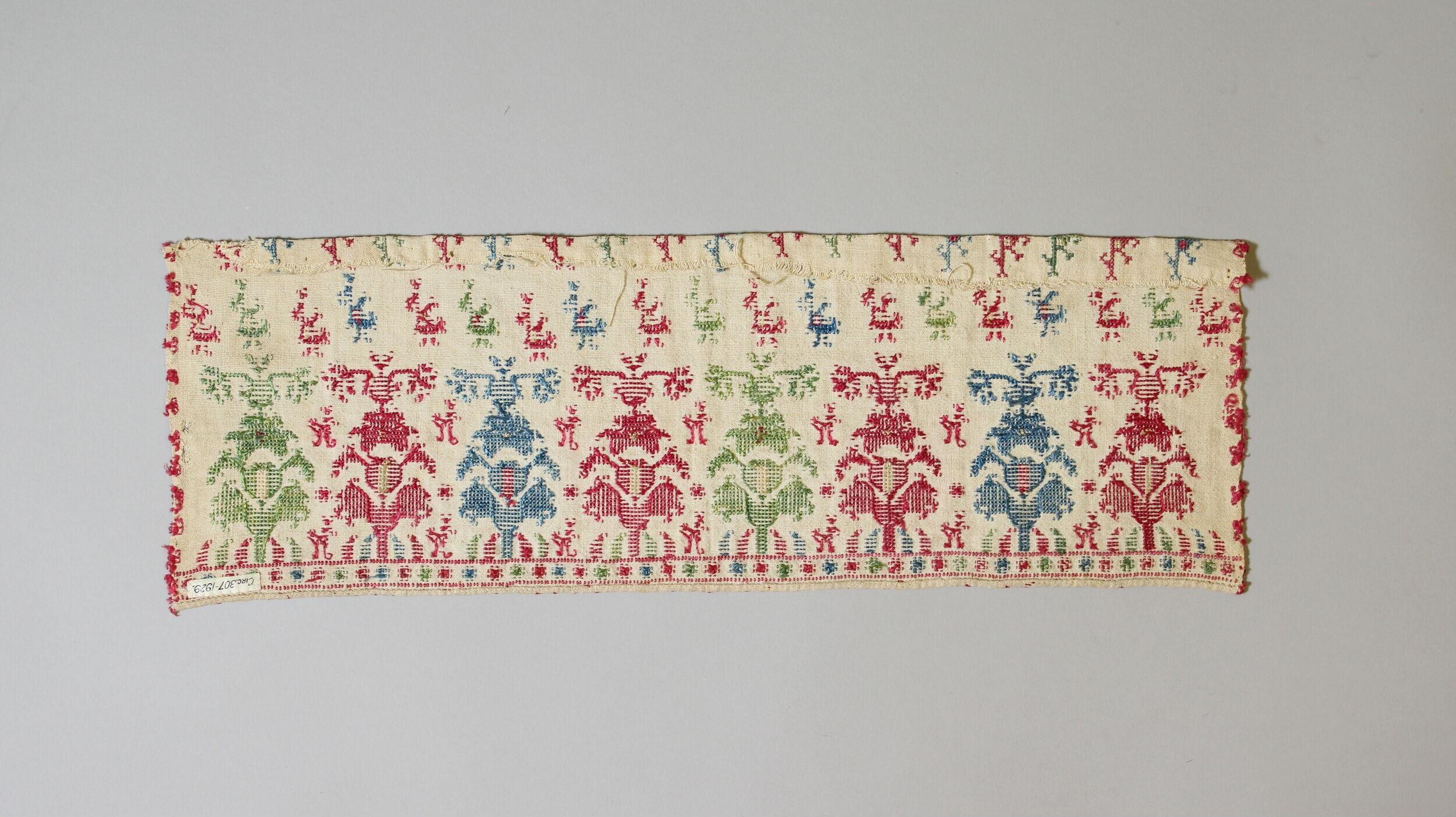 Description: Embroidery, silk on linen, 18th century, Greek